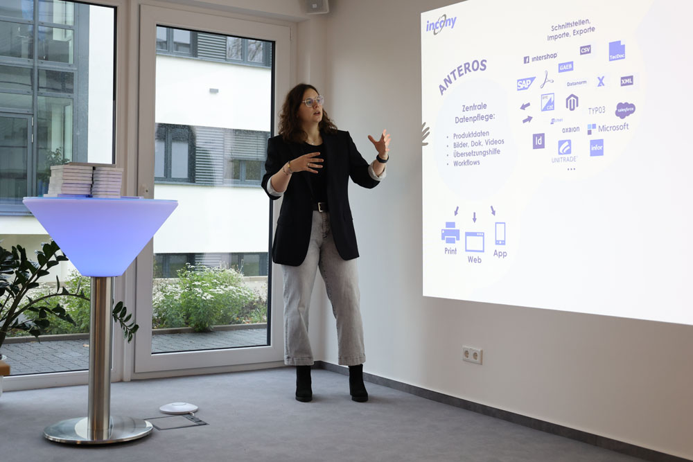 Zu Beginn des Praxistages stellte die INCONY-Mitarbeiterin Mareen das Unternehmen INCONY und seine PIM-Software ANTEROS vor. In einem kleinen Quiz konnten die Schüler anschließend das Thema PIM (Produkt Informations Management) spielerisch kennenlernen. Anschließend wechselten sie vom Besprechungsraum in die Mitarbeiter-Büros, um in realer Umgebung an einem ersten kleinen INCONY-Projekt zu arbeiten. Nach einer Schritt-für-Schritt-Anleitung in die INCONY-Software hat jedes Team seine eigene Produktdatenbank mit seinen Lieblingsprodukten aufgebaut und zum Teil auch schon mit der Software einen Katalog oder Webshop dazu generiert. Bei der Abschlusspräsentation wurden schon echt gute Ergebnisse präsentiert.